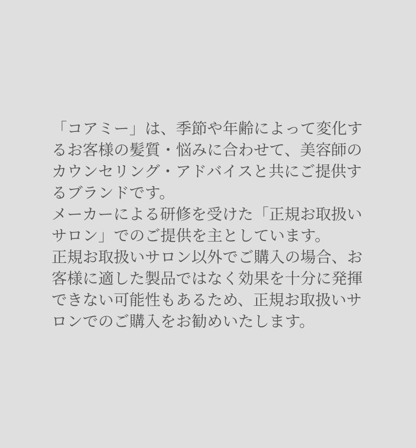 髪を芯から強く*。 ずっとヘアデザインを楽しんでいける、 サロン専売大人髪ヘアケアブランド